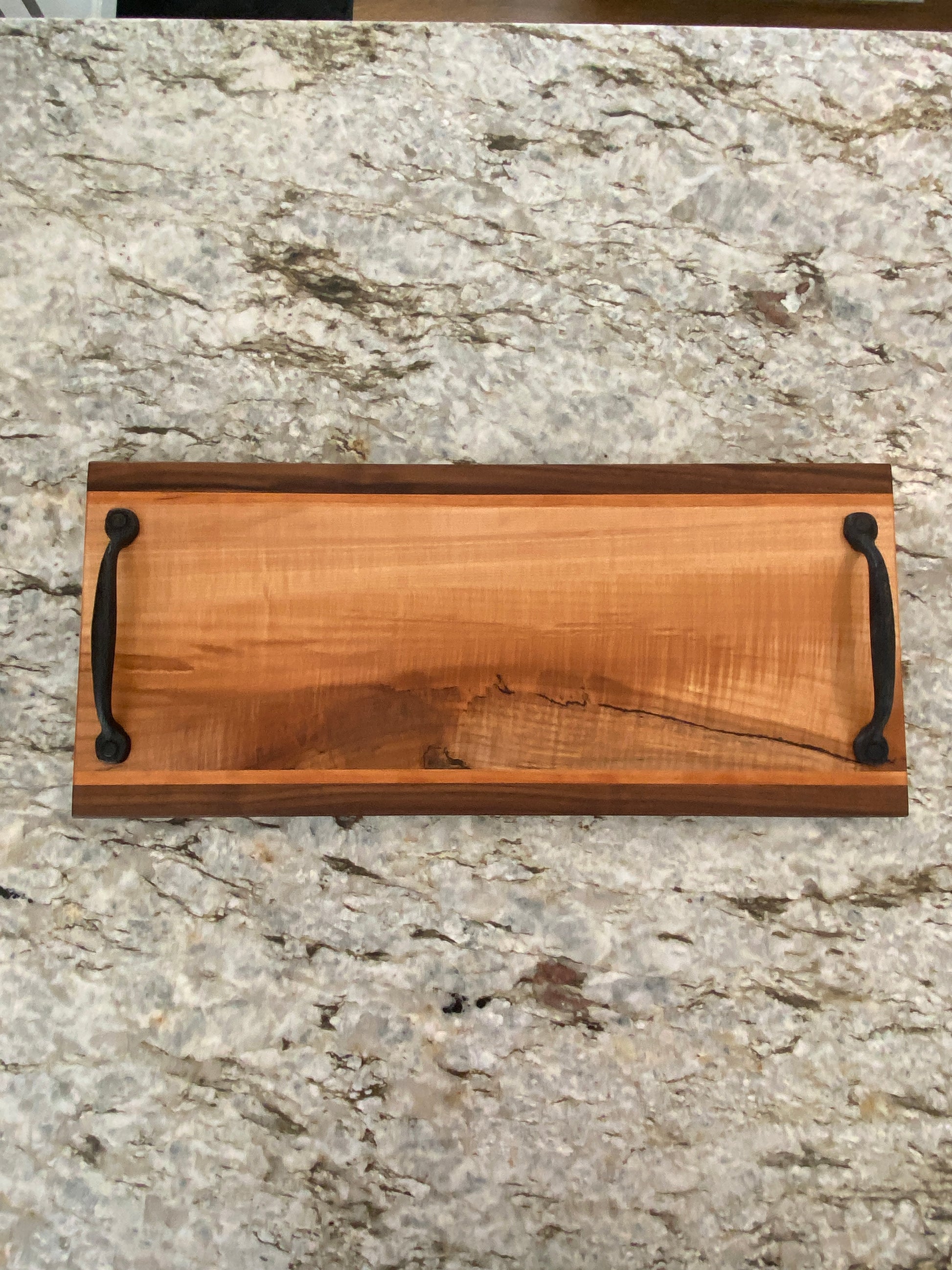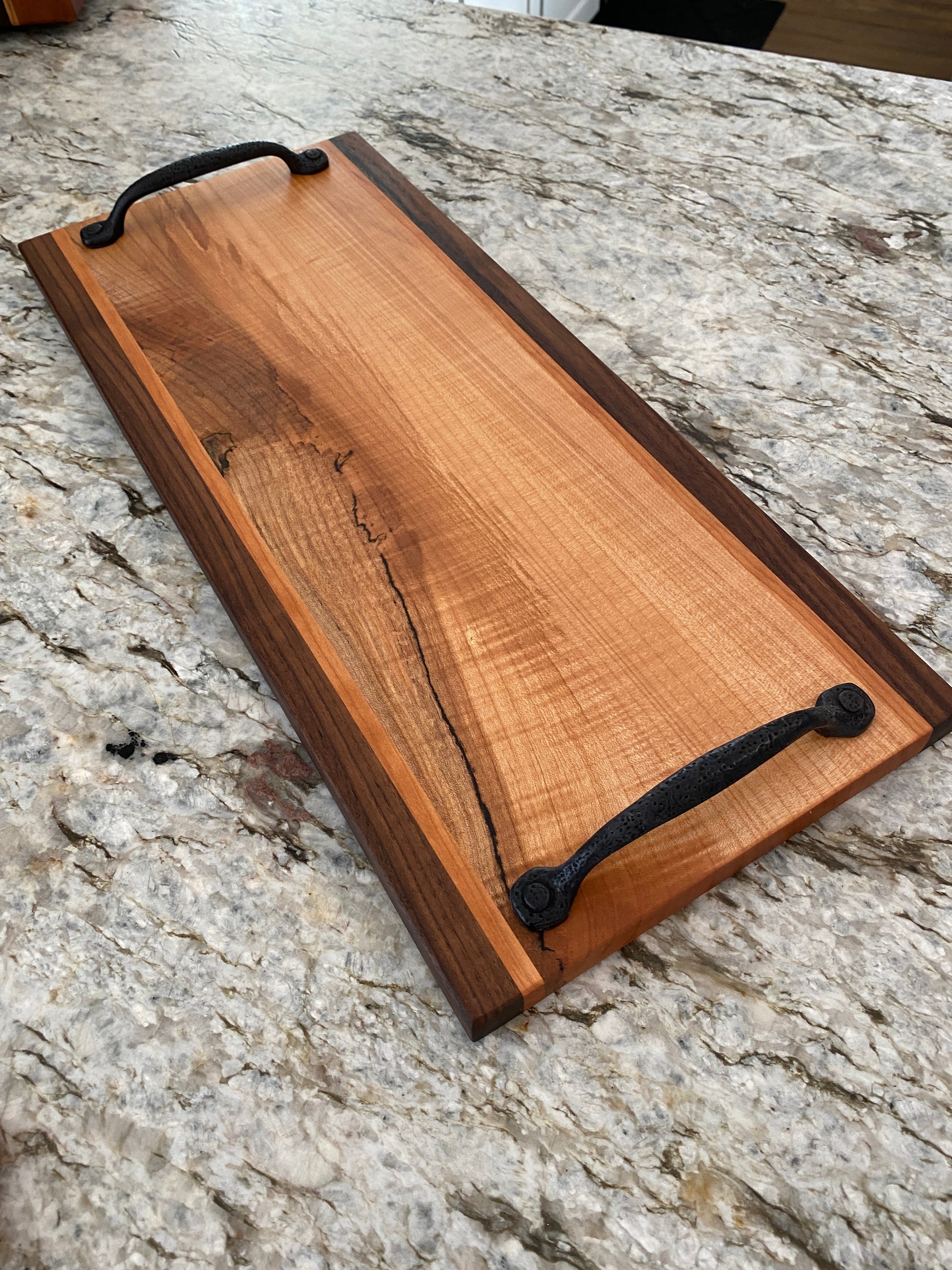 Figured Maple, Cherry and Walnut Serving/Charcuterie Board with handles